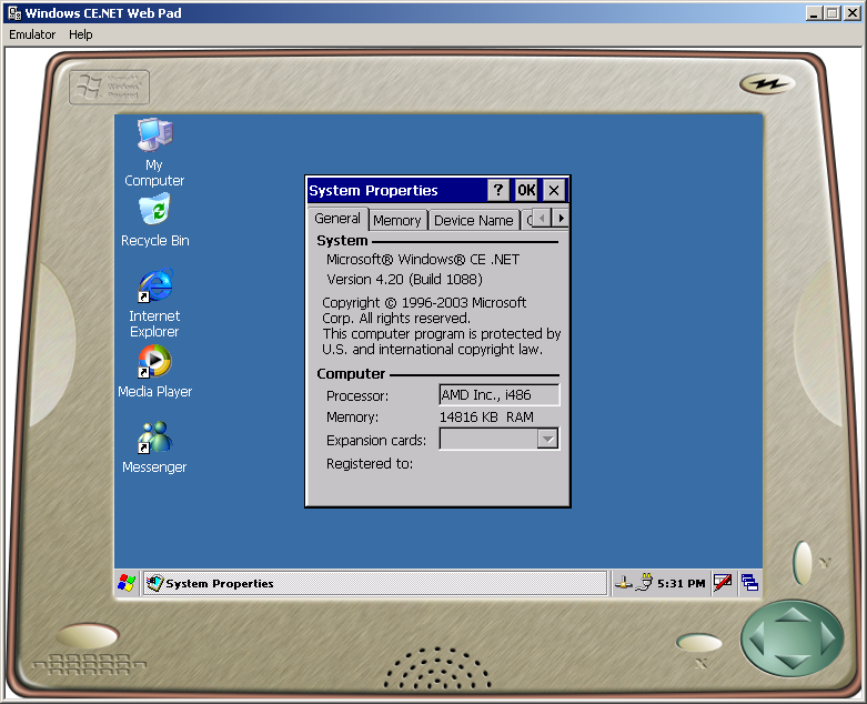 I couldn't get anywhere with Internet Explorer. Even with a connection, I wasn't able to visit any website using IE for CE 4.2. Despite it including WMP, it didn't come with any audio/video codecs. As such, MP3 and video playback wasn't possible under the emulated environment. One would have been surprised considering that both MP3 and video playback would have been considered standard, and WMP typically supported the WMV codec by default, which has been used in other device emulators, but not in the CE 4.2 SDK.